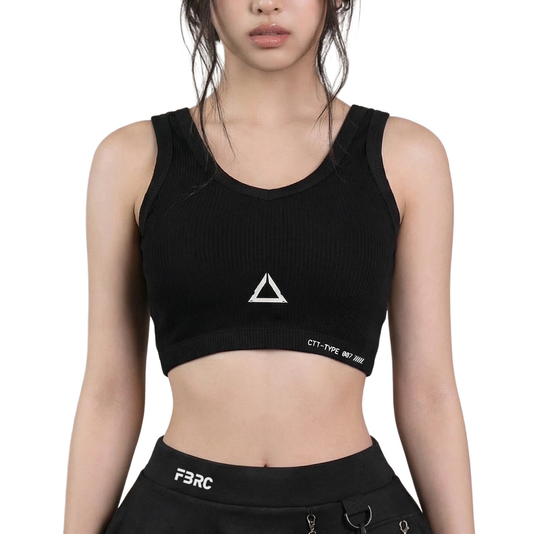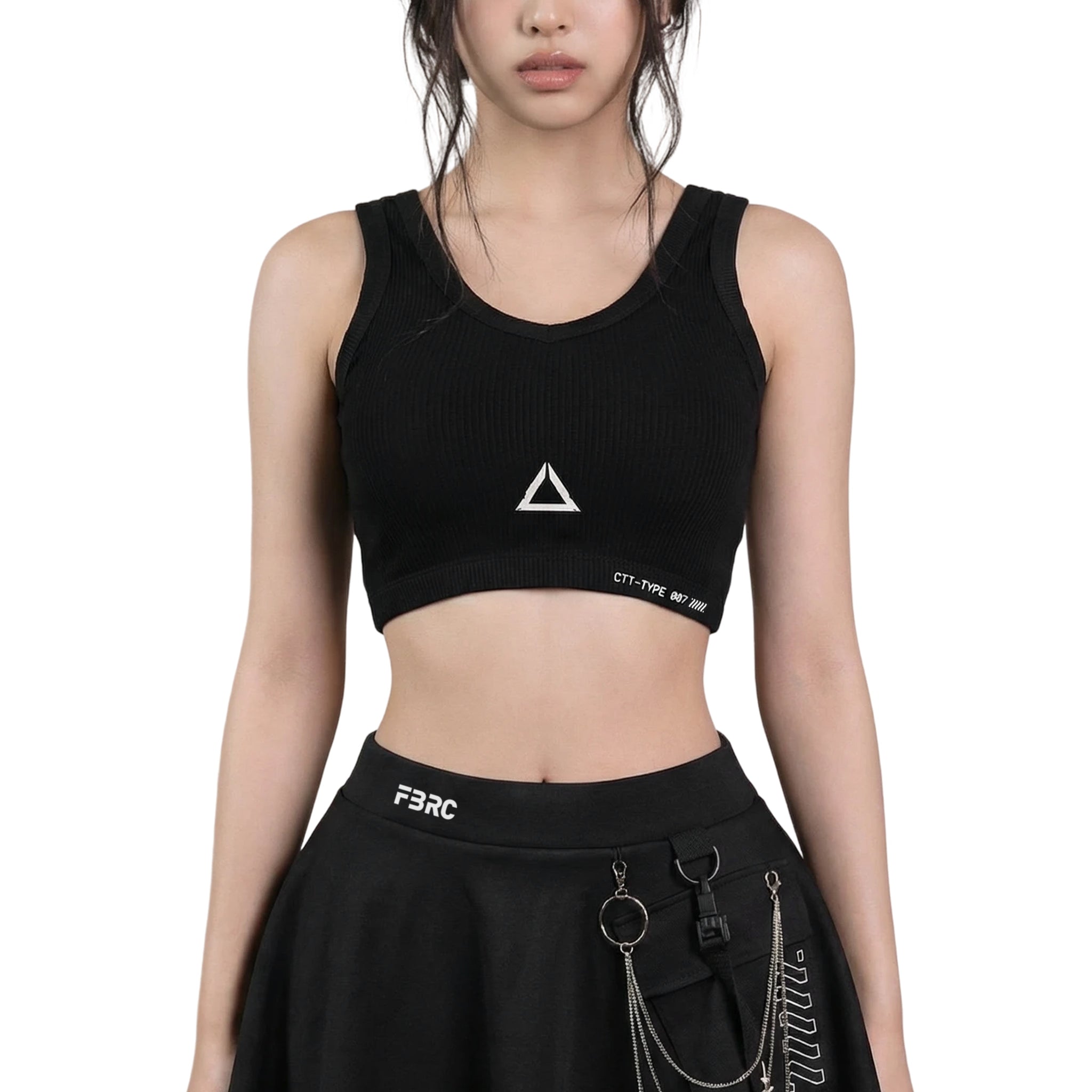 This black crop tank top delivers the perfect blend of comfort and style. Built from luxuriously soft ribbed cotton with impressive stretch, it moves seamlessly with your body. The intentionally cropped cut sits just below the bust, offering a chic, contemporary silhouette that works beautifully as a standalone piece or layered under your favorite tops. The iconic triangle logo adds a signature touch that sets this wardrobe staple apart.