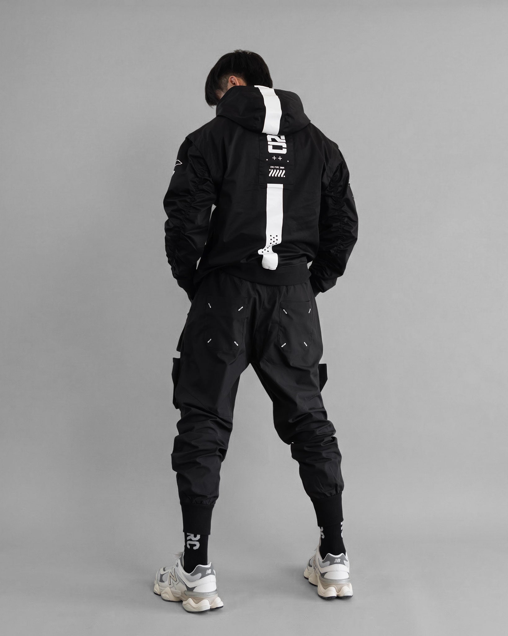 Transform your wardrobe with the CMG-Type 200R Black Convertible Hoodie, engineered for maximum versatility. This innovative piece features premium lightweight cotton twill construction that maintains its shape while keeping you comfortable all day. The game-changing detachable sleeves with concealed shoulder zippers let you switch from full coverage to sleeveless in seconds, adapting seamlessly to any occasion or weather shift. Enjoy the relaxed fit with signature baggy sleeves finished with an elastic scrunch detail for that coveted contemporary look. Branded with iconic logos across all panels and a distinctive patch at the hem, this hoodie delivers both style and functionality. Whether you're layering for warmth or going sleeveless for summer, this convertible essential proves one piece can do it all.