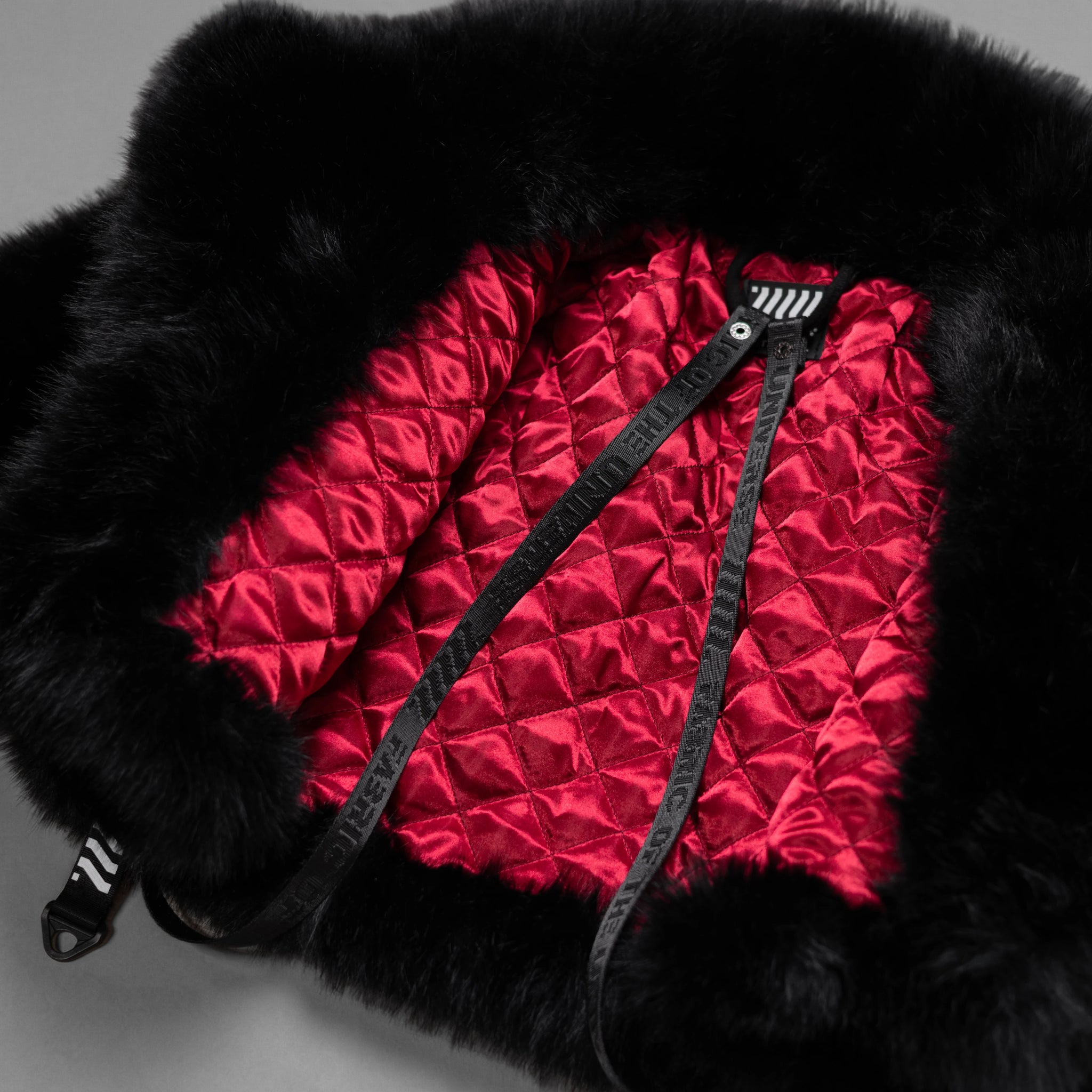 Experience luxury and versatility with the FCS-Type 720 Black Crop Fur Coat. Crafted from ultra-plush 1600 GSM synthetic fur, this statement piece delivers exceptional warmth without compromise. The striking crimson diamond-quilted liner—exclusively designed—adds sophistication to every wear. Innovative inner carrying slings transform your coat into a convenient backpack, freeing your hands while maintaining effortless style. The cropped silhouette delivers an edgy, contemporary aesthetic that elevates any outfit. Transition seamlessly from outdoor adventures to indoor spaces—simply slip it on or carry it with ease. Redefine how you experience comfort and practicality.