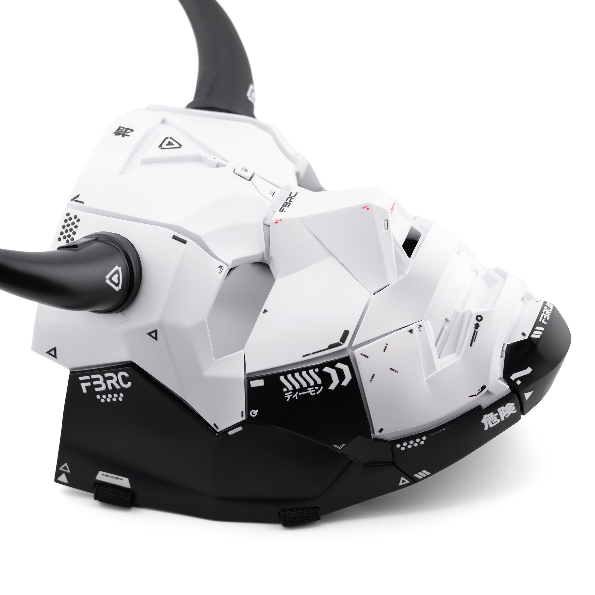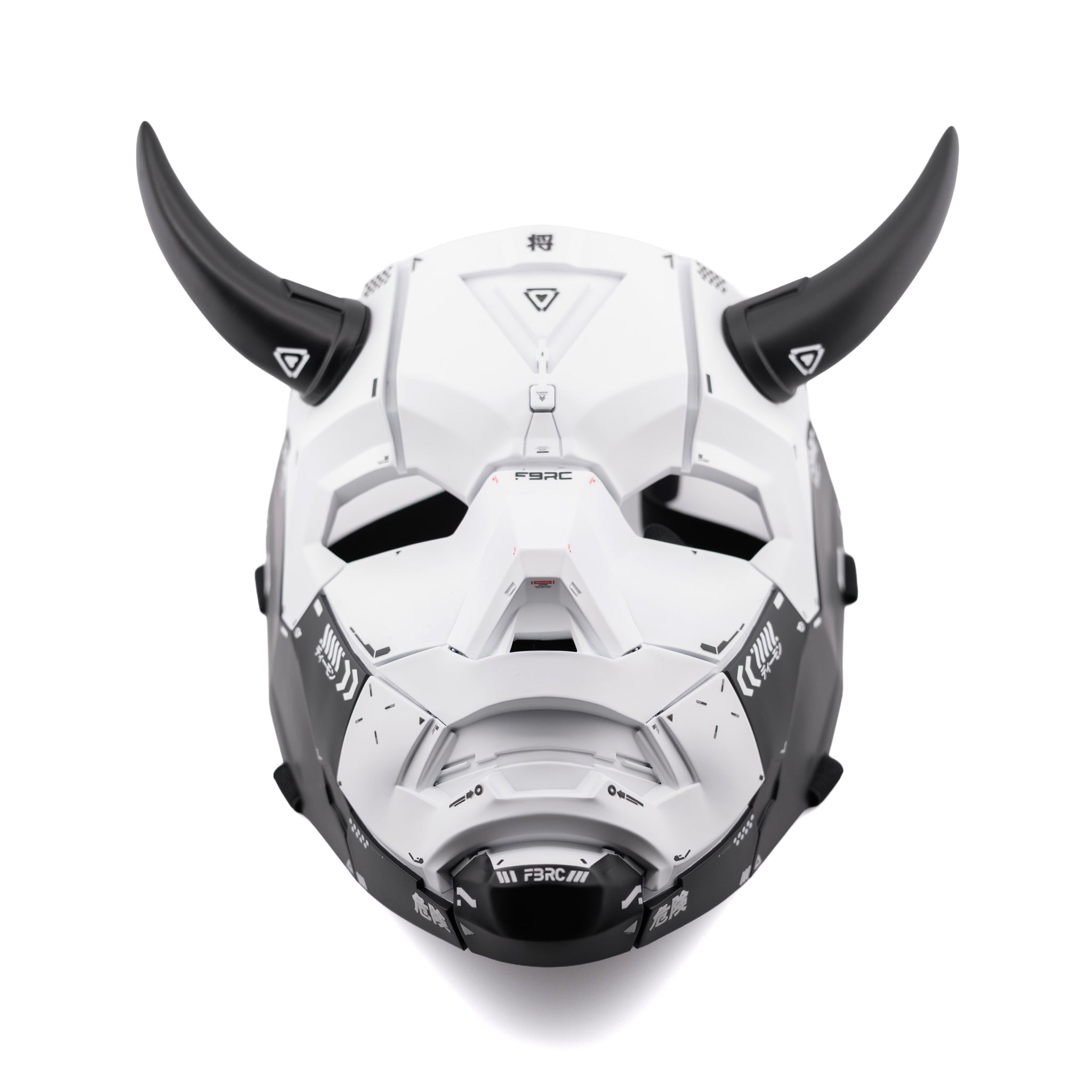 Genova Reborn Demon limited edition mask. Derived from our original Genova mask redesigned for a new era. Made of thick and durable resin materials through casting and layering with fiberglass. The horns come unattached and are secured by M4 nuts. Each piece is carefully hand painted by Putty Studio in Thailand. The Demon version comes with immaculate small decals throughout the whole mask. It comes packaged in our limited edition Genova Reborn collector's box.