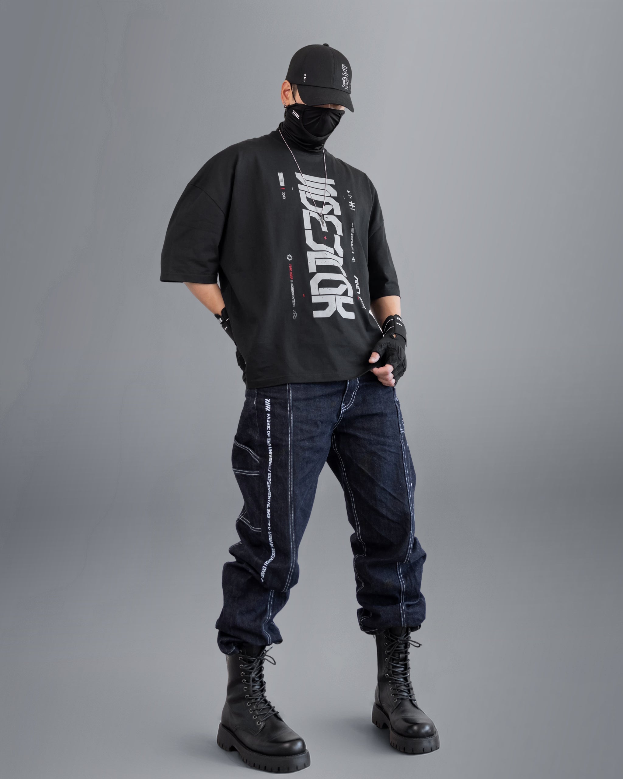 Elevate your casual wardrobe with this heavyweight Samurai Stack tee, crafted from premium 100% combed cotton that feels as good as it looks. The oversized silhouette features a relaxed fit through the shoulders that tapers at the torso for a flattering, contemporary shape. Intricate gray artwork with distressed detailing adorns the front, back, and left sleeve, delivering bold visual impact with authentic character. Built to last through countless wears and washes, this versatile piece transitions seamlessly from everyday wear to statement styling.